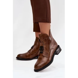 Ocieplane Skórzane Botki Damskie Z Ozdobnym Detalem Brązowe Briselda