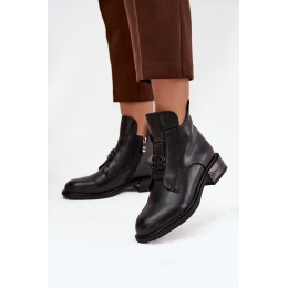 Ocieplane Skórzane Botki Damskie Z Ozdobnym Detalem Czarne Briselda