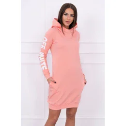 Predstavujeme vám módne šaty. Šaty s kapucňou a nápisom na rukáve off white. Šaty majú vrecká. Šaty sú vyrobené z vysoko kvalitného materiálu. Veľkosť je univerzálna a vyhovuje dámam, ktoré nosia veľkosť S, M alebo L.
