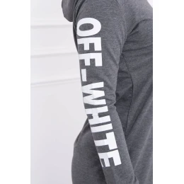 Predstavujeme vám módne šaty. Šaty s kapucňou a nápisom na rukáve off white. Šaty majú vrecká. Šaty sú vyrobené z vysoko kvalitného materiálu. Veľkosť je univerzálna a vyhovuje dámam, ktoré nosia veľkosť S, M alebo L.