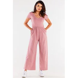 Široký overal z veľmi príjemného a mäkkého úpletu. Vrchný diel s krátkymi rukávmi a výstrihom do V. Elastický pás. Navrhnuté a ušité v Poľsku.