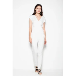 Športová kombinéza s krátkymi rukávmi a dlhými zúženými nohavicami. Model je zakončený efektným obálkovým výstrihom a šnúrkou v páse zdôrazňujúci siluetu.