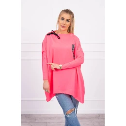 Oversize mikina s asymetrickými bokmi ružová neónová