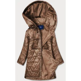 Hnedá dámska prešívaná bunda oversize s kapucňou (ag5-010)