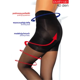 Klasické, sťahujúce pančuchové nohavice 40DEN. Vďaka štruktúre Push-up tvarujú postavu a opticky pozdvihujú zadoček a zoštíhľujú brucho. 82% polyamid, 18% elastan.