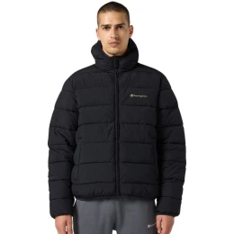 Pánska bunda Champion s kapucňou čierna 221548 KK001 Táto pánska bunda Champion je zimná bunda so syntetickou páperovou výplňou. Izolácia Repreve™ je šetrná k životnému prostrediu. Jednosmerný hlavný zips. Hydrofóbna úprava tkaniny spomaľuje absorpciu vonkajšej vlhkosti. Horizontálne prešívanie. Vysoký stojačik. Neodnímateľná, nenastaviteľná kapucňa. Bočné vrecká. Voľný strih dresu so zníženou líniou ramien. Všitá guma na leme, manžetách a kapucni. Technické údaje: - Hlavná tkanina: 100% polyamid - Výplň: 100% polyester (syntetické páperie, Repreve™).