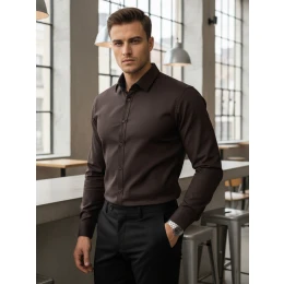 Pánska elegantná hladká tmavohnedá košeľa SLIM FIT FashionStreet DX2682
