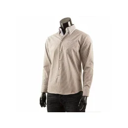 Pánska elegantná košeľa s dlhými rukávmi a pruhmi. Košeľa má dvojitý golier. Vnútorná strana goliera, klopy a vnútorná strana manžiet sú kockované.