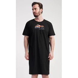 Pánska bavlnená nočná košeľa Legenda s krátkymi rukávmi. Jednofarebná pánska nočná košeľa s okrúhlym výstrihom a dĺžkou po kolená má na hrudi obrázok pretekárskeho auta a nápis Legenda. Nočná košeľa je vhodným darčekom pre všetkých milovníkov rýchlych áut. Použitý materiál zo 100 % bavlny je príjemný a pružný na dotyk.