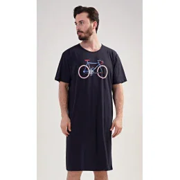 Pánska bavlnená nočná košeľa s krátkym rukávom Bike. Pánska nočná košeľa pre všetkých milovníkov pohodlia je jednofarebná, s väčším obrázkom retro bicykla na hrudi a nápisom Nie som starý, som štýlový. 100 % bavlnený materiál je príjemný a pružný na dotyk.