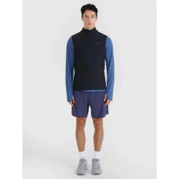 pánska bežecká vesta 4F je funkčná vonkajšia vrstva na tréning v teplejších dňoch. Úzky strih prilieha k telu, zatiaľ čo klasická dĺžka cez boky neobmedzuje pohyb pri behu vonku.