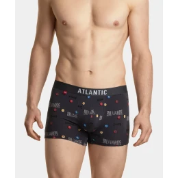 Toto trojbalenie obsahuje priliehavé pánske boxerky zdobené pestrofarebnou potlačou biliardovej gule. Boxerky so športovým charakterom, nízkym pásom a univerzálnou dĺžkou nohavíc. V páse sú nohavičky označené mäkkou, nestláčajúcou a nekrčivou gumou, ktorú zdobí logo ATLANTIC. Boxerky majú tiež tvarovací strih, vďaka ktorému spodná bielizeň dokonale sedí a prilieha k telu. Boxerky sú vyrobené z elastickej bavlnenej tkaniny jemnej na dotyk, ktorá je kombináciou jemnej bavlny a elastanu. Odolná pletenina pri používaní, priedušná, zabraňuje poteniu tela a je šetrná aj k tej najcitlivejšej pokožke.