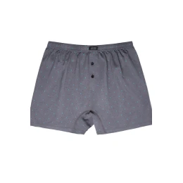 Sivú tkaninu zdobí jemný drobný vzor v kontrastnej farbe, ktorý dodáva spodnej bielizni moderný a zároveň decentný vzhľad. Elastický pás zaručuje priliehavé nosenie bez tlaku a praktické zapínanie na gombíky dodáva bielizni funkčnosť.