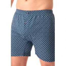 Pánske boxerky MXC 947 v sebe spájajú pohodlie, funkčnosť a klasický štýl. Sú vyrobené z vysokokvalitnej bavlny a poskytujú priedušnosť a pohodlné nosenie počas celého dňa. Voľný strih zaručuje voľnosť pohybu, vďaka čomu je tento model ideálnou voľbou na denné aj nočné nosenie. Elastický pás sa dobre prispôsobí telu bez toho, aby spôsoboval tlak, zatiaľ čo praktické zapínanie na gombíky dodáva funkčnosť. Štýlový vzor malých rybičiek dodáva spodnej bielizni jedinečný charakter a spája klasiku s nádychom originality. Model MXC 947 je ideálnou voľbou pre mužov, ktorí ocenia pohodlie a vysokú kvalitu spracovania.