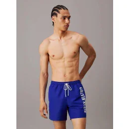 Pánske stredne dlhé plavecké šortky so šnúrkou KM0KM00819 CY0 svetlo modré - Calvin Klein