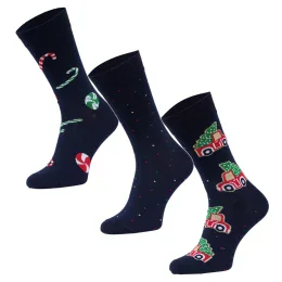 Pánske ponožky A63 Premium CORNETTE - tmavomodrá farba - vyrobené z kvalitnej bavlny - 3 kusy rôznych vzorov - ploché švy - netlačia - vianočná kolekcia