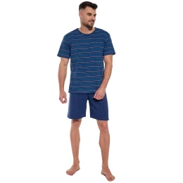 Pánske pyžamo 338/48 Various CORNETTE - tmavomodré - vyrobené z kvalitnej bavlny - pruhované tričko s krátkym rukávom - pohodlné jednofarebné šortky