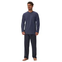 Pánske pyžamo 41913 Herb light blue HENDERSON - vyrobené z kvalitnej bavlny - svetlomodré tričko s dlhým rukávom - dlhé kárované nohavice - šnúrka v páse