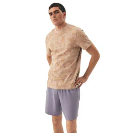 Pánske pyžamo 42599 South HENDERSON - vyrobené z kvalitnej bavlny - s kvetinovou potlačou - béžové tričko s krátkym rukávom - jednofarebné šortky - široký elastický pás