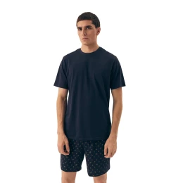 Pánske pyžamo 42601 Shore tmavomodré HENDERSON - vyrobené z kvalitnej bavlny - tmavomodré tričko s krátkymi rukávmi - vzorované šortky - elastický pás so šnúrkou na stiahnutie
