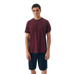 Pánske pyžamo 42633 Dive red HENDERSON - vyrobené z kvalitnej bavlny - červené tričko s krátkymi rukávmi - jednofarebné šortky - široký elastický pás so šnúrkou na stiahnutie