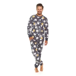 Pánske pyžamo 7109 Doctornap - vyrobené z kvalitnej bavlny - grafitové tričko s dlhými rukávmi - dlhé nohavice s vreckami - potlač s ovcami - certifikát OEKO-TEX Standard 100