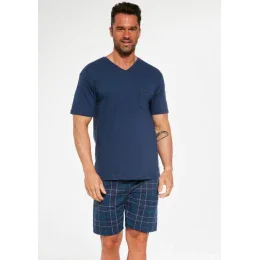 Pohodlné bavlnené pánske pyžamo s krátkym rukávom od značky Cornette. Vrchný diel má výstrih do V a na prednej strane našité vrecko s logom Cornette. V páse je všitá pohodlná guma.