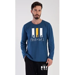 Pánske bavlnené dlhé pyžamo Oliver. Pánske pyžamo sa skladá z trička s dlhým rukávom a dlhých nohavíc. Jednofarebné tričko s okrúhlym výstrihom má na sebe nápis PARAMORE, ktorý sa opakuje aj na nohaviciach. Tričko zdobia obrázky rockovej kapely. Nohavice majú elastický pás, šnúrku na stiahnutie a praktické vrecká. Použitý materiál je mäkký a príjemný na dotyk. Obsah bavlny v tričku a nohaviciach je 100 %.