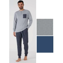 Pánske pyžamo talianskej značky Karelpiu. Pyžamo sa skladá z dvoch častí. Košeľa má dlhé rukávy, ktoré sú zakončené manžetou. Spodná časť je voľná, okolo krku je okrúhly výstrih, ktorý má zapínanie na tri gombíky. Na ľavej strane je všité vrecko. Nohavice majú pohodlný elastický pás, nohavice sú zakončené pružnou manžetou. Pyžamo je vyrobené z príjemnej hrejivej bavlny.