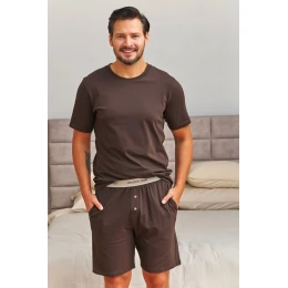 Vrchný diel pyžama tvorí jednotné tričko s krátkymi rukávmi a jednoduchým univerzálnym strihom, ktorý neobmedzuje v pohybe a je ideálny na všetky ročné obdobia. Minimalistický dizajn dodáva celku nadčasový charakter.
