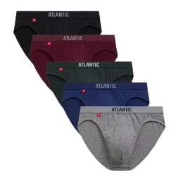 Pánske slipy 5 pack 5 SMP 004/2 Atlantic - vyrobené z kvalitnej bavlny - 5 ks v balení - vypasované - pohodlná guma s nášivkou ATLANTIC - výhodné balenie piatich farieb