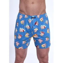 Bavlnené šortky voľného strihu s veselým motívom od značky Cornette. Šortky majú elastický pás s nášivkou Cornette na prednej strane a zapínanie na gombíky.