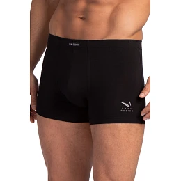 Pánske boxerky z mäkkého bambusového úpletu s elastickým pásom, priliehajúce k telu, pohodlné a nositeľné, v škatuľke v čiernej a grafitovej farbe.