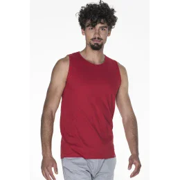Pánske tričko bez rukávov. Má bezšvíkové boky, výstrih a ramená sú olemovaná. 100% bavlna. Gramáž: 150g / m2.