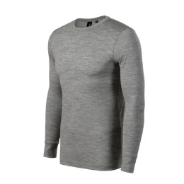 extra jemná merino vlna nemačkavý a vysoko priedušný materiál termoregulačné a antibakteriálne vlastnosti schopnosť odvádzať vlhkosť a pohlcovať pachy priliehavý strih s bočnými švami úzky lem výstrihu z vrchného materiálu vnútorná časť výstrihu utesnená páskou z vrchného materiálu ramenné švy spevnené páskou dlhé rukávy s manžetou odporúčané sušiť v horizontálnej polohe