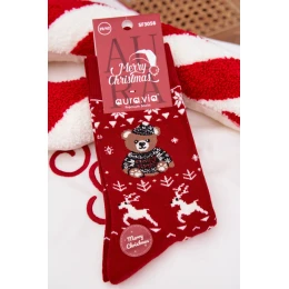 Pánske vianočné ponožky s medvedíkom vo svetri - červené