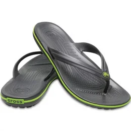 - Žabky Crocs v grafitovej farbe so zelenými prvkami.