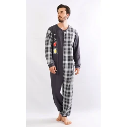 Pánsky bavlnený overal I love Beer. Overal po celej dĺžke zaručuje pohodlné spanie, rukávy a nohavice sú ukončené elastickým lemom. Overal sa skladá z dvoch polovíc - jednej farebnej, ktorá je doplnená veselou potlačou, druhá polovica je potlačená károvanou potlačou, zadná časť je tiež z károvanej potlače. Použitý bavlnený materiál je príjemný a poddajný na dotyk.