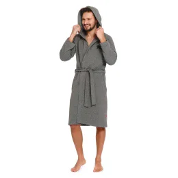 Pánsky župan 9768 Doctor nap - vyrobený z veľmi kvalitnej a príjemnej bavlny - šedá farba - s kapucňou - s vreckami - viazanie v páse