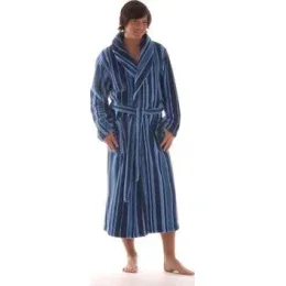 Pánsky župan Joe 2132 - Vestis, dlhý pruhovaný župan v modrej farbe so šálovým lemom. Župan má veľké vrecká a zaväzuje sa pomocou opasku.