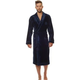 Krásny hrejivý župan s golierom a zaväzovaním v páse od spoločnosti L&L. Župan má na hrudi výšivku, ktorá dodáva luxusný vzhľad. Dĺžka siaha pod kolená a na bokoch má dve vrecká. Ideálny doplnok na chladné zimné večery.