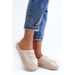 Lesklé dámske papuče zdobené nápisom a srdiečkom. Nasadzovací model so zakrytým nosom. Stojí na hrubej podrážke. Stielka podšitá kožušinou.