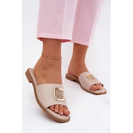 Pantofle z přírodní kůže Ploché podpatky Ozdoba S.Barski KV61-6019 Nude