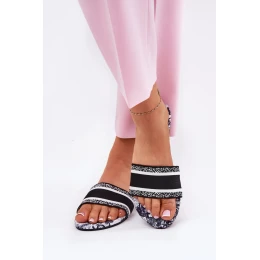 Dámske ploché papuče z textilného materiálu s jedinečným vzorom, ktorý im dodáva jedinečný charakter. Tieto papuče sú ideálne na teplé dni, perfektne sa hodia k letným šatám, sukniam alebo šortkám a vnesú ľahkosť, farebnosť a módny akcent do vášho každodenného outfitu. Ideálne na pláž aj na prechádzky po meste.