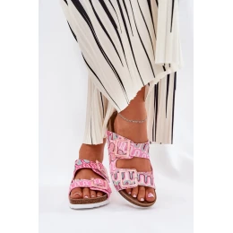 Vzorované dámske šľapky z textilného materiálu osadené na korkovej platforme, ktoré spájajú pohodlie s módnym vzhľadom. Dva remienky s prackami zdobenými flitrami im dodávajú výnimočný charakter. Profilovaná semišová stielka zaručuje pohodlie počas celého dňa. Tieto šľapky budú skvelou voľbou na letné dni, perfektne sa hodia k šatám, sukniam alebo šortkám a každému outfitu dodajú ľahkosť a lesk.