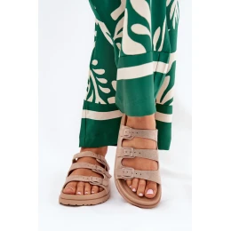Tieto dámske papuče vyrobené z ekologického semišu sú vynikajúcou voľbou na teplé dni. Tento model má tri nastaviteľné remienky s prackami, ktoré zaisťujú dokonalé prispôsobenie sa nohe. Profilovaná stielka zaisťuje pohodlie počas celého dňa, takže tieto papuče sú ideálnou voľbou na prechádzky alebo letné výlety.