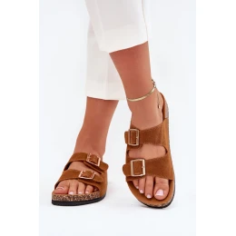 Tieto dámske sandále z eko-semišu, osadené na korkovej platforme, spájajú štýl a pohodlie. Dve zlaté pracky s nastaviteľnými remienkami umožňujú ideálne prispôsobenie nohe, zatiaľ čo tvarovaná stielka zaručuje pohodlie počas celého dňa. Sú ideálne na letné outfity, skvele sa hodia k šatám, sukniam alebo šortkám.