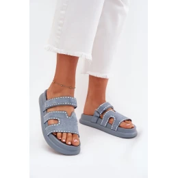 Dámske sandále z ekologického semišu. Umiestnené na platforme. Ozdoba im dodáva jemný charakter a zapínanie na suchý zips umožňuje jednoduché prispôsobenie sa nohe, čo zaručuje pohodlie počas celého dňa. Skvelé na letné dni, výborne sa hodia k ležérnym a každodenným outfitom.