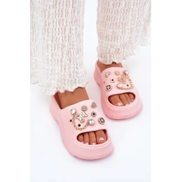 Dámske papuče na platforme z penového materiálu sú štýlovou voľbou na teplé dni. Zlaté, roztomilé ozdoby na remienku im dodávajú moderný charakter. Ideálne na dovolenku, dni strávené pri bazéne alebo na pláži.