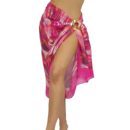 Pareo šatka D95CH 33 SELF - ružová - z jemnej vzdušnej tkaniny - so vzorom - odolná voči UV žiareniu - nemačkavý materiál - zapínanie na trblietavú pracku